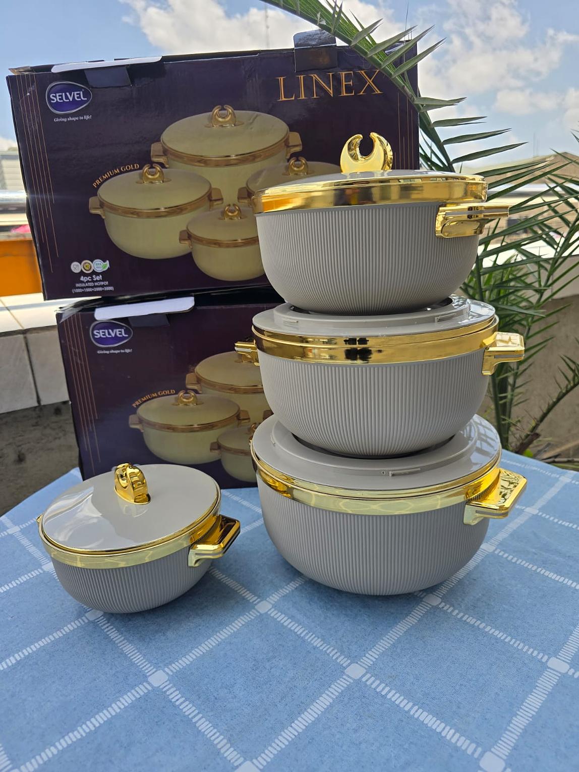 The ThermaServe 4-Piece Hot Pot Set is the ultimate solution for keeping your culinary creations at the perfect serving temperature for hours. This set includes four insulated containers of varying sizes, allowing you to store and serve a full-course meal with ease, whether it's a large main dish, a side, or a delicious dessert. Each hot pot is engineered with a double-walled, stainless steel interior that creates a vacuum seal, locking in heat and preserving the flavors and nutrients of your food. The durable, food-grade exterior is built to withstand daily use, while the tight-sealing lids with easy-grip handles ensure a secure and mess-free experience. Ideal for family gatherings, parties, or for simply keeping dinner warm for latecomers, the ThermaServe set combines sleek design with superior thermal performance, making it a must-have for any home that values fresh, hot food.