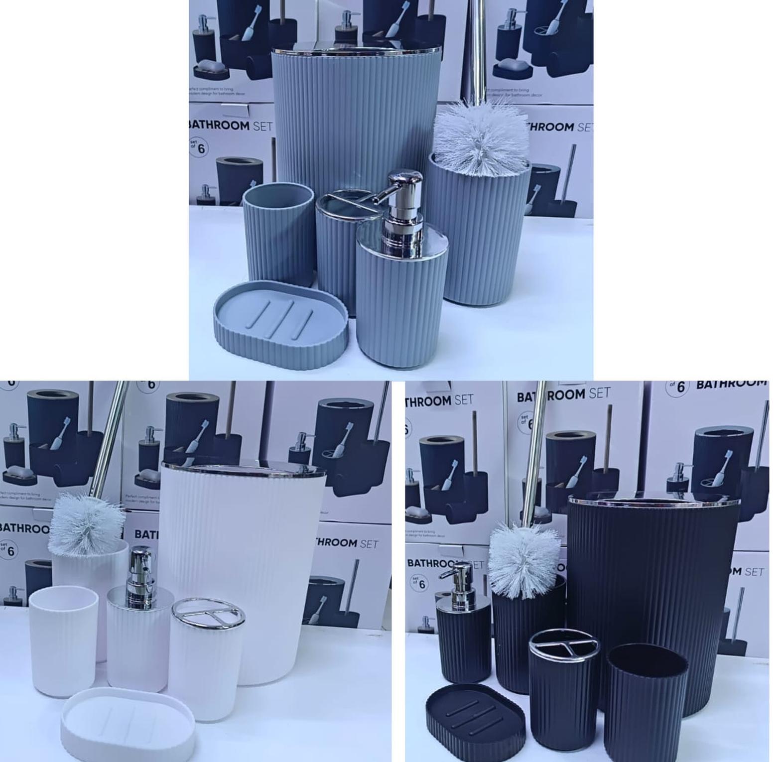 A coordinated 6-piece bathroom accessories set designed to bring elegance, organization, and convenience to your daily routine.