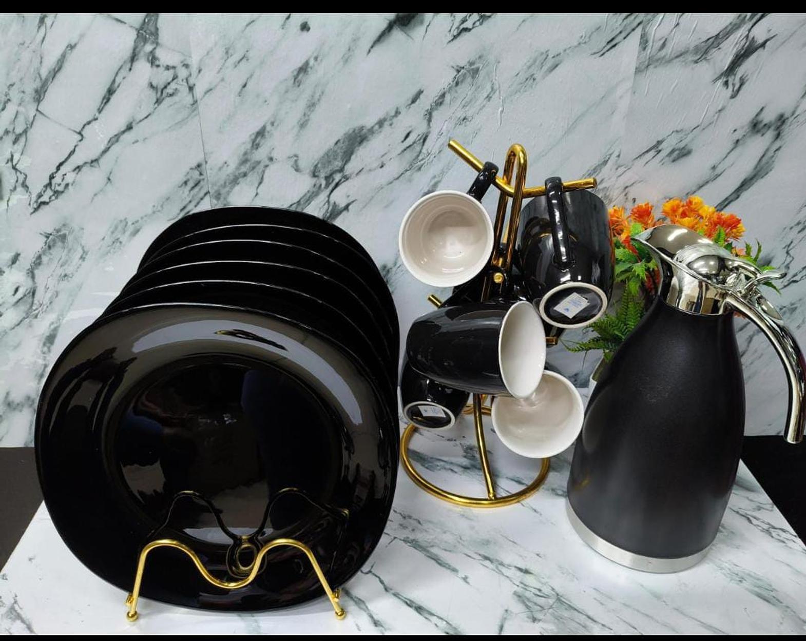 Elevate your dining experience with this stylish all-black 13-piece dinner set, perfect for everyday use or special occasions