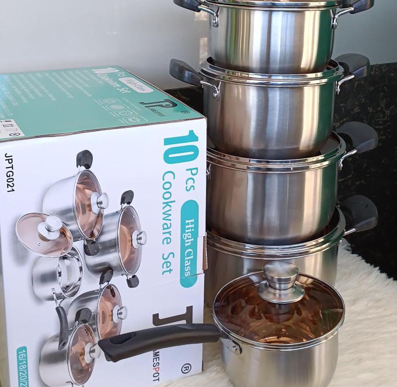The 10pcs JP Stainless Cookware set offers durable, high-quality cooking essentials designed for effortless cooking and long-lasting performance.