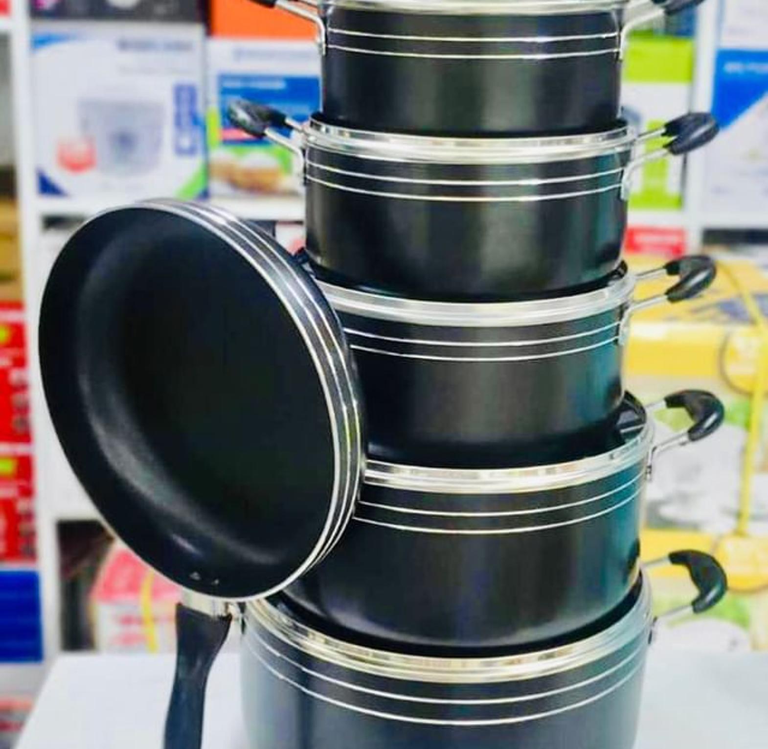 14Pcs TC Heavy Non-Stick Cooking Pot Sufuria Set. Durable aluminium cooking pots provides long lasting superior Non-stick performance and has different sizes for different cooking needs hence you can cook different delicacies.