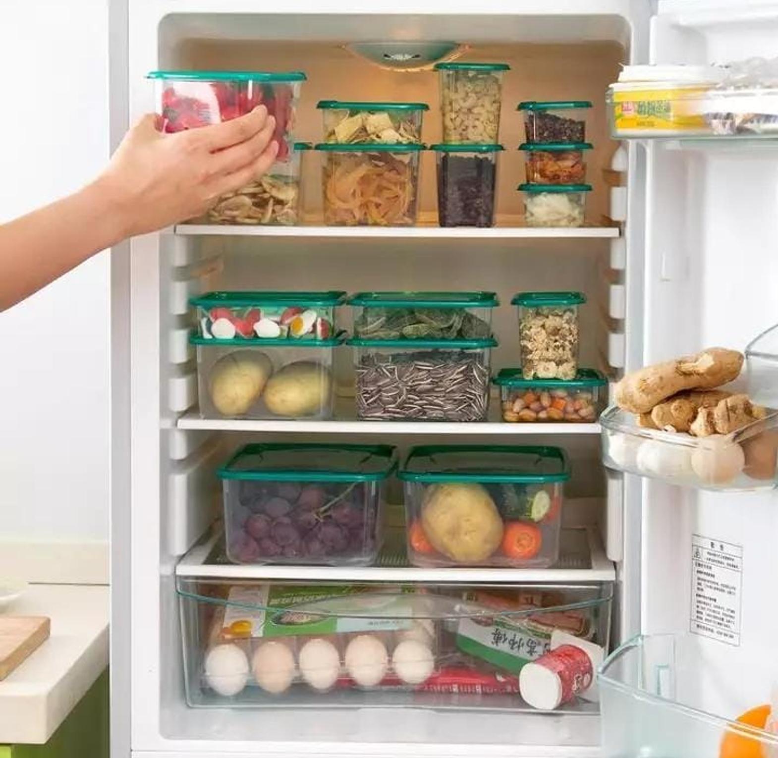 A complete set of transparent, sealed food containers designed to keep meals fresh and organized in the refrigerator or on the go.