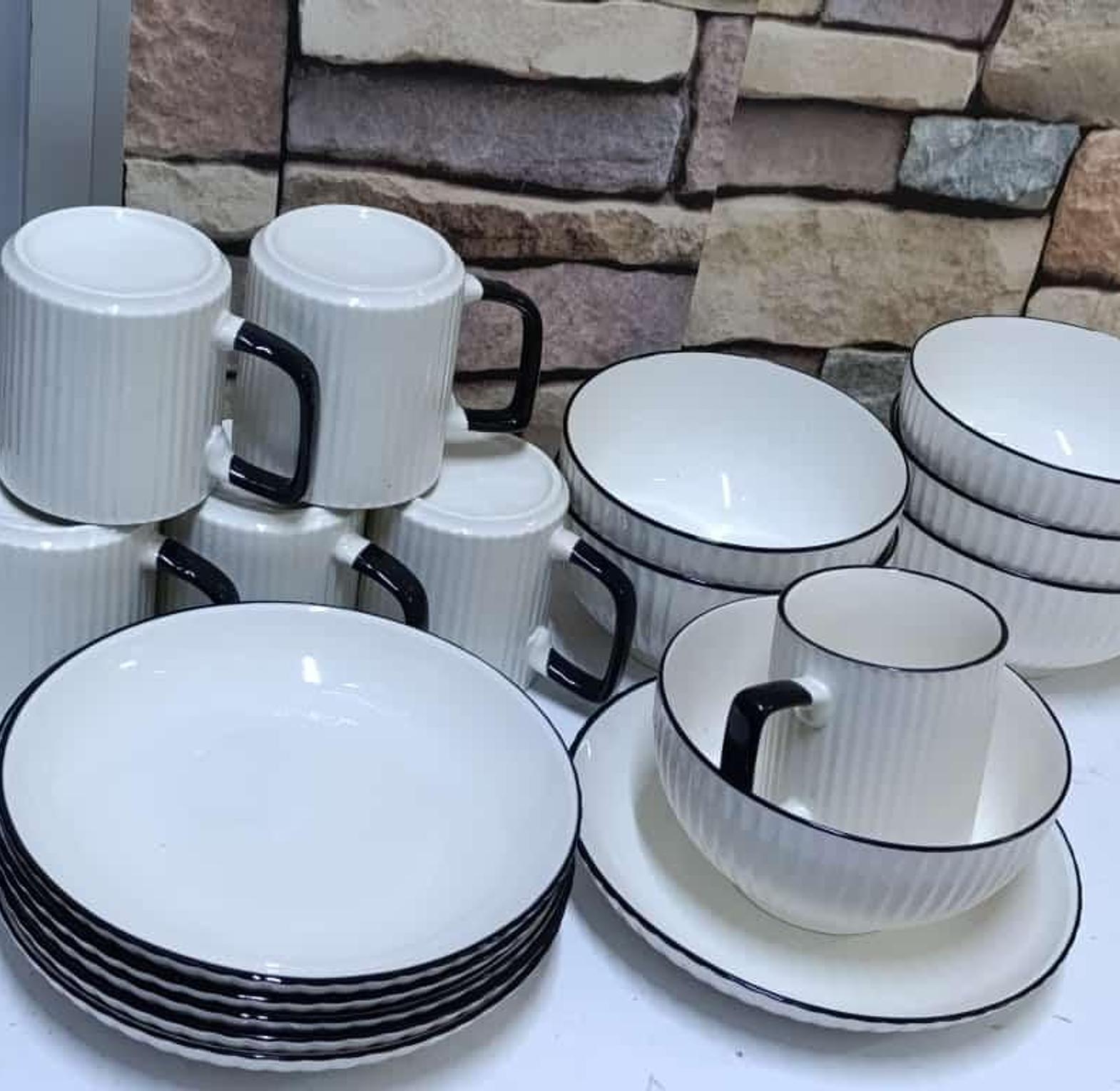 Experience the art of dining with this elegant Japanese-inspired 18-piece ceramic set.