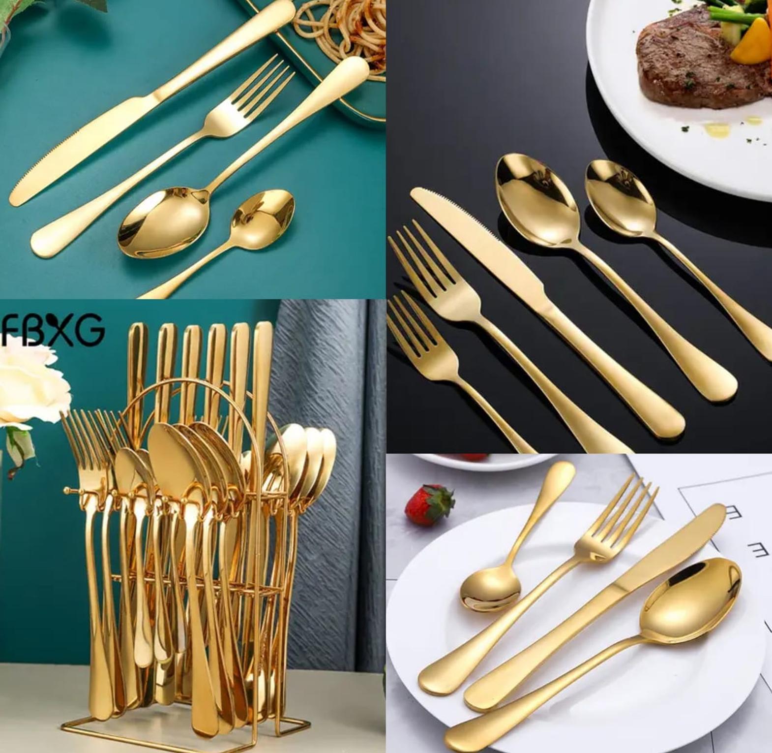 The 24-piece Gold Cutlery Set adds elegance to any table setting, offering stylish, durable utensils for everyday dining or special occasions.