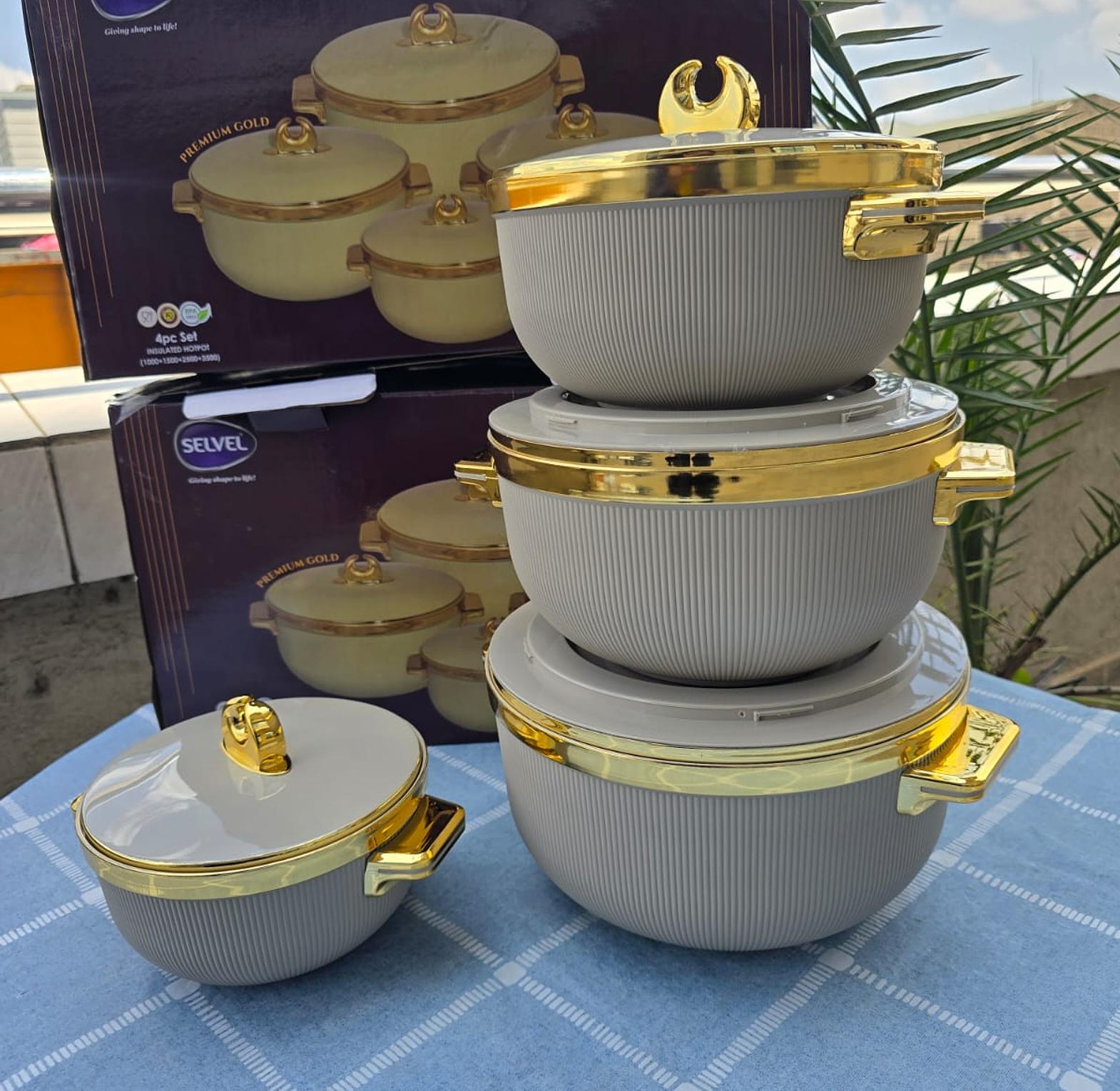 The ThermaServe 4-Piece Hot Pot Set is the ultimate solution for keeping your culinary creations at the perfect serving temperature for hours. This set includes four insulated containers of varying sizes, allowing you to store and serve a full-course meal with ease, whether it's a large main dish, a side, or a delicious dessert. Each hot pot is engineered with a double-walled, stainless steel interior that creates a vacuum seal, locking in heat and preserving the flavors and nutrients of your food. The durable, food-grade exterior is built to withstand daily use, while the tight-sealing lids with easy-grip handles ensure a secure and mess-free experience. Ideal for family gatherings, parties, or for simply keeping dinner warm for latecomers, the ThermaServe set combines sleek design with superior thermal performance, making it a must-have for any home that values fresh, hot food.