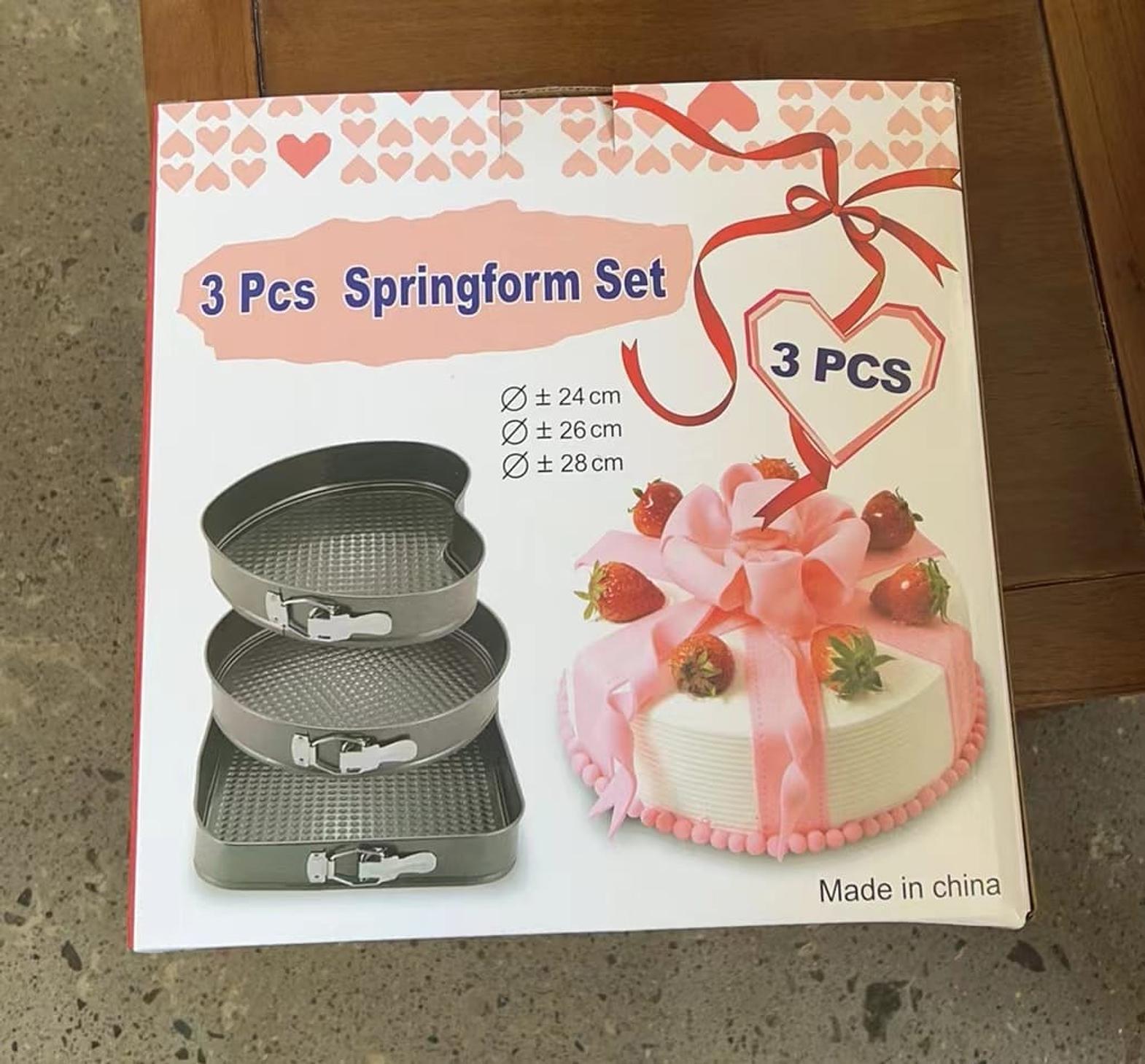 Complete baking and cake decoration items at one stop. All the cake tools are microwave safe, easy to use, non-toxic, choose according to your suitability. Ideal for making cakes with a loose base and springform quick release clasp leaving your cake in perfect condition. Ideal for removing cheesecakes. Perfect for delicate cheesecakes. Quick-release metal buckles. Teflon finish Baking Tins Removable bottoms in spring form design ensure you can serve in style Easy spring release clip Take your baked treats straight from the oven to party. Package Including 3 pcs of Aluminium Round Cake Mould Enjoy baking! Enjoy Cooking!