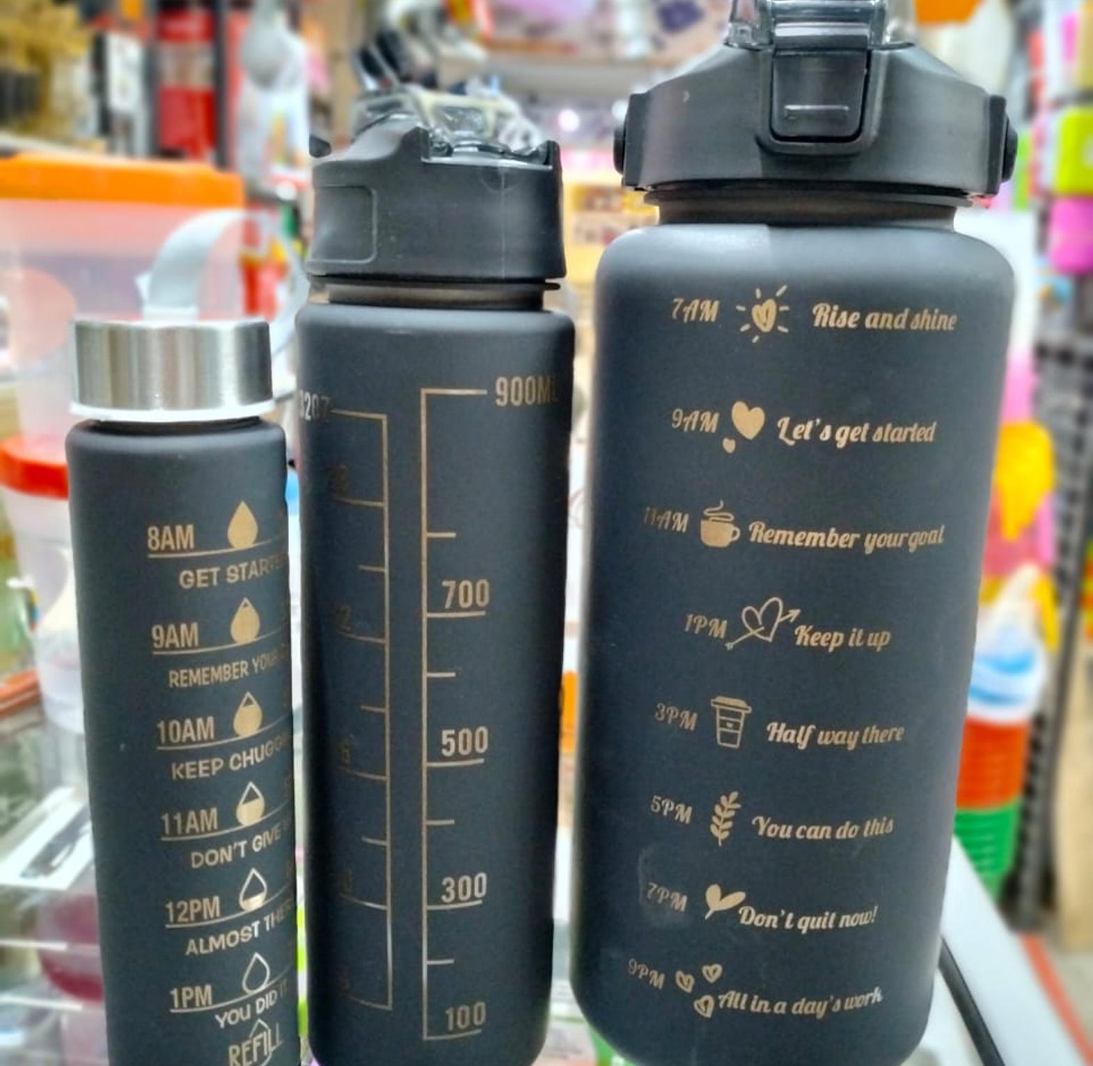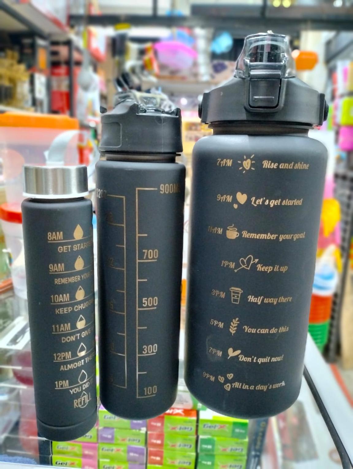 The 3-in-1 Motivational Bottle is a versatile, inspiring hydration companion that combines a water bottle, fruit infuser, and time tracker to keep you on track with your daily goals.