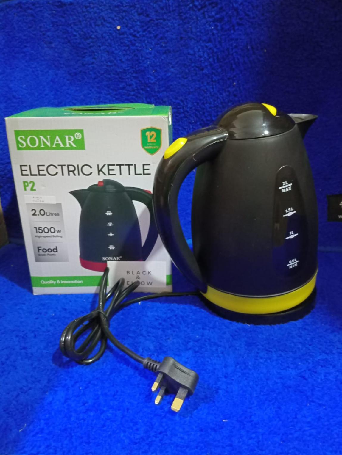 Sonar 2L Cordless Electric Kettle ,1500W Energy Efficient Fast Boiling Large 2 Litre capacity Built-in boil-dry and overheating protection Switches itself off once water boils Cordless and portable Durable food-grade material Comfortable handle. Large mouth making it easy to clean