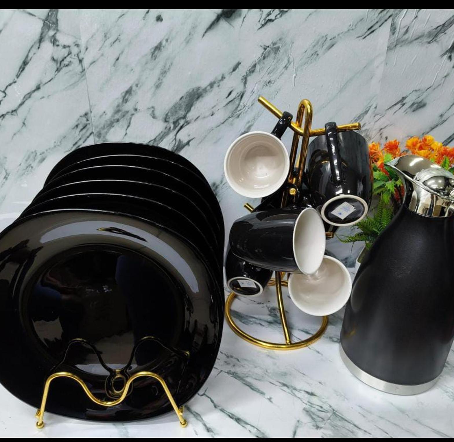 Elevate your dining experience with this stylish all-black 13-piece dinner set, perfect for everyday use or special occasions