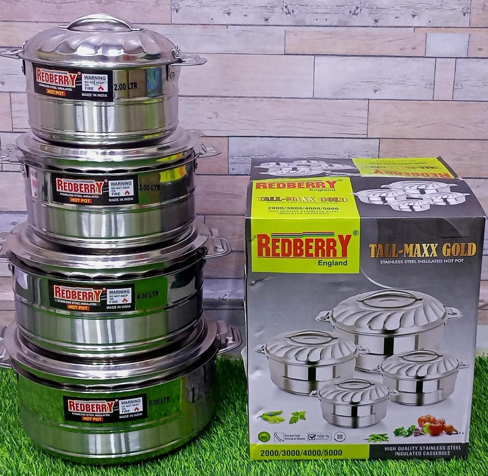 The Tall Maxx Stainless Steel Hotpot set, consisting of 4 pieces, offers durability and modern elegance, perfect for keeping your meals warm and stylishly presented.